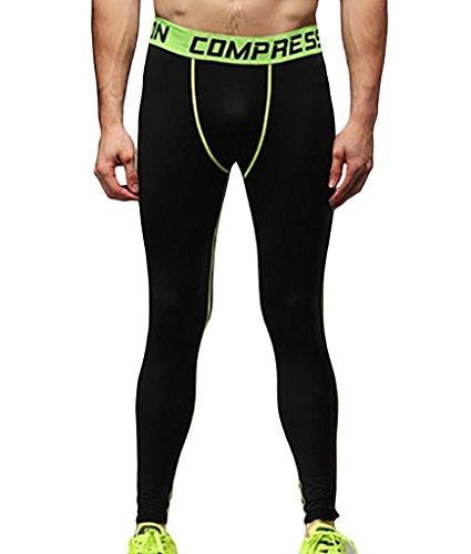 MEN'S BOYS COMPRESSION BASELAYER PANTS LEGGINGS RUNNING TIGHTS BLACK GREEN L