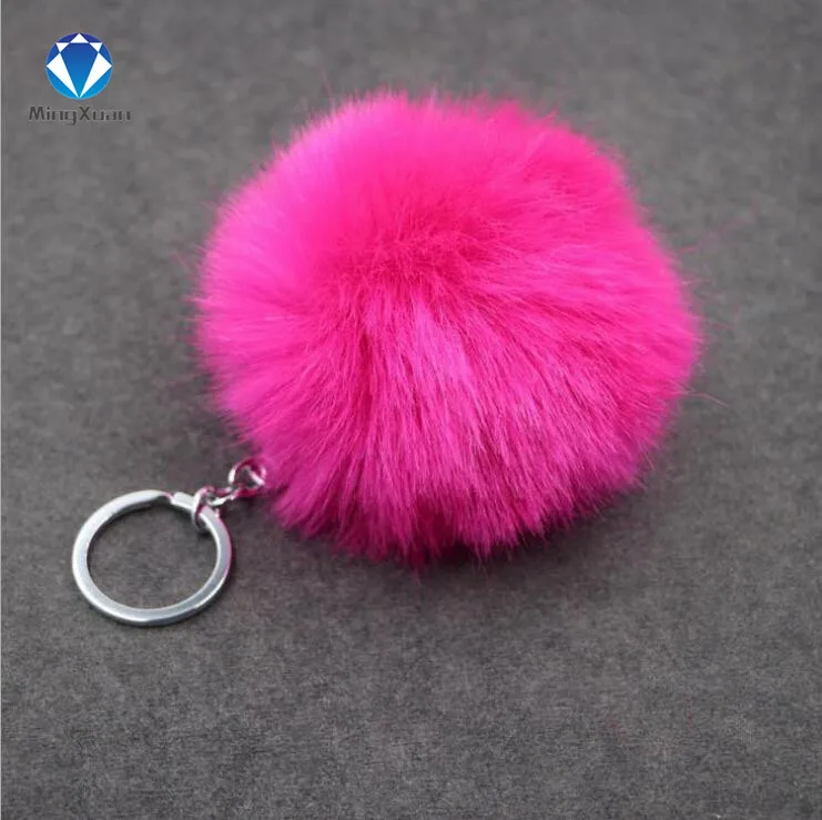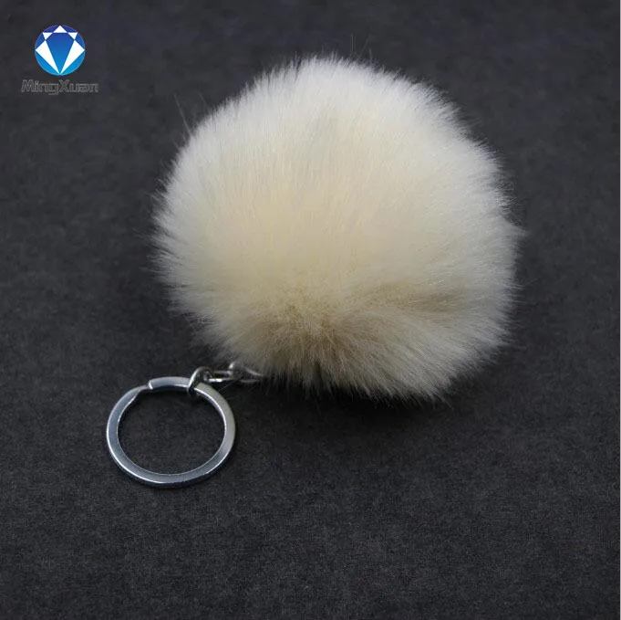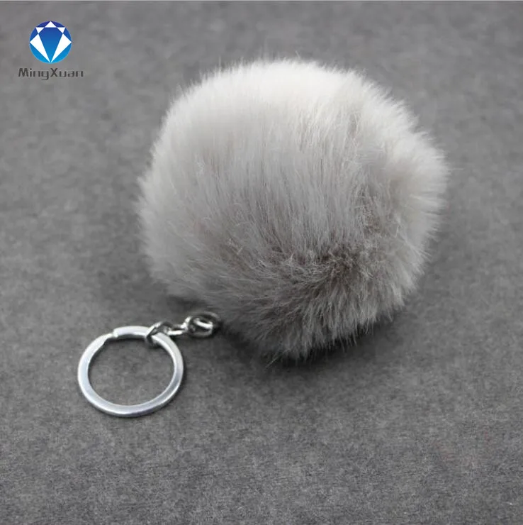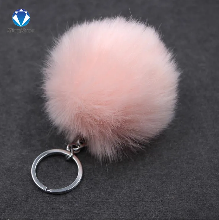 porte clef pompom de fourrure:rabbit fur ball keychain
