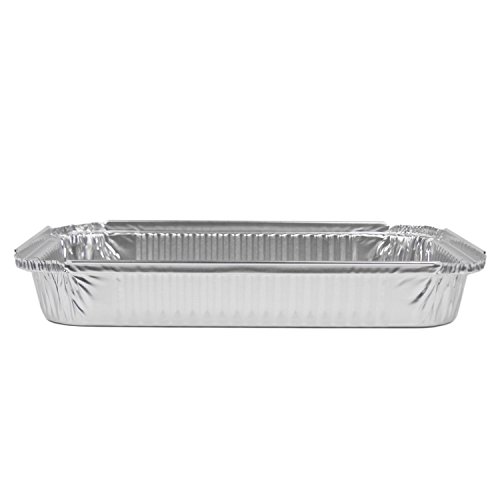 Easily bake, roast, warm, store, or transport your food with this aluminum foil bake/roast pans. Made of durable aluminum foil, this pan supports heavy pastas and entrees without bending, sagging, or cracking. It's great for cake, pastry, casserole, lasagna, and more! This material also offers quality heat-retention and evenly distributes heat throughout the pan. Thanks to this pan's 2.25" height, you can store and cook a large quantity of your famous casserole at once!