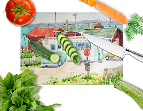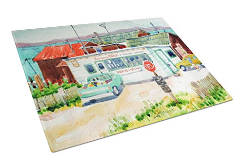Caroline's Treasures 6141LCB "Tacoma Beer and Boiled Shrimp Market" Glass Cutting Board, Large, Multicolor