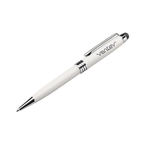 With a soft stylus tip on one end and a black ink ballpoint pen on the other, this handy tool is a must-have for precisely navigating a phone or tablet screen, then jotting down meeting notes the old-fashioned way. Ventev's signature soft-touch finish and sophisticated styling make this the perfect addition to any briefcase or travel bag. The Ventev stylus pro allows for an all-in-one solution to conveniently write on screens and paper alike.