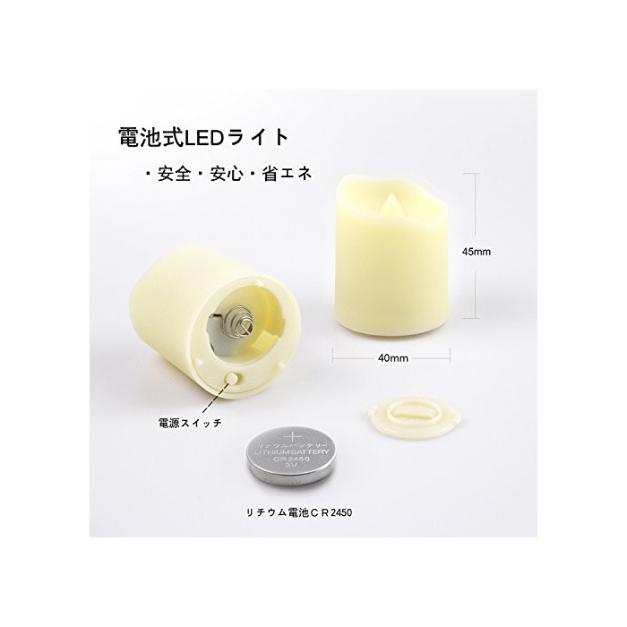 【전지식】전지식 그래서 닿아도 뜨겁지 않고, 작은 아드님이나 애완동물이 있는 가정에서도 안심 입니다.그것뿐만 아니라,불을 사용하지 않기 때문에 가구의 옆(소바)나 천제의 가까운 시일내에 등,두는 곳소도 선택하지 않아 쾌적하게 사용하실 수 있습니다. ※세트 내용:LED캔들(양초) 라이트 본체×6,모니터용 버튼 전지×6개(본체에 장착필)고, 리모콘×1개