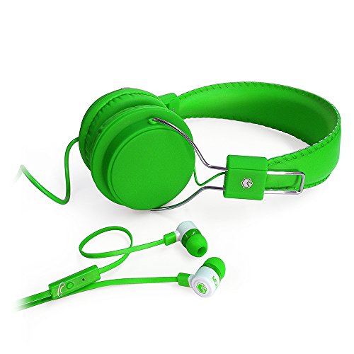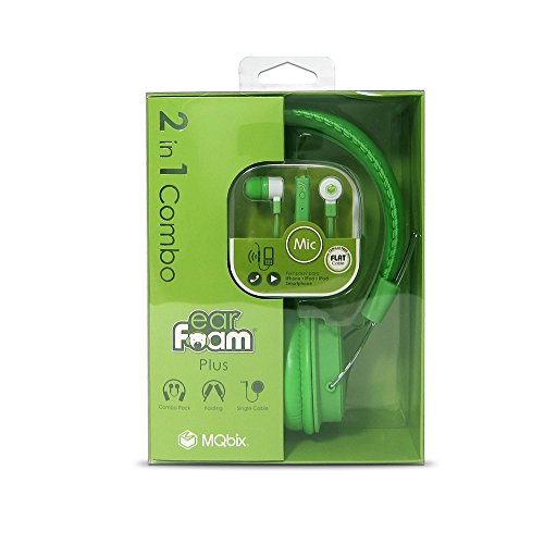 MQbix MQHT470GRN 2-In-1 Combo Pack EarFoam Plus High Performance In-Ear Earphones with Built-In Mic and Deep Bass Stereo Headphones, Green