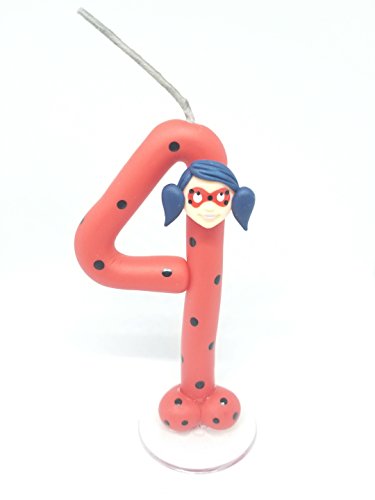 4th Fourth Birthday Candle Number Boy Girl - 4 Four Year Candle Number - Handmade Candles - Happy Birthday Cake Topper - Ladybugs Candle Cake