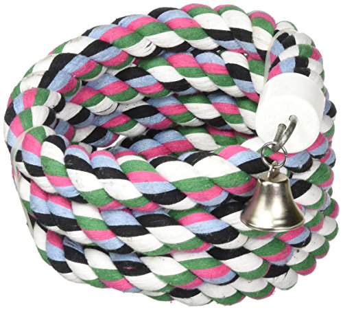 A&E CAGE COMPANY 001348 Happy beaks Cotton Rope Boing with Bell Bird Toy Multi-Colored, 1.25X97 in