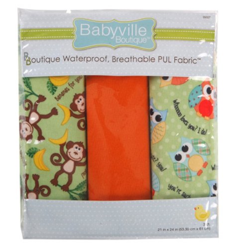 Babyville Boutique Packaged PUL Fabric, Playful Friends Monkey and Hoot