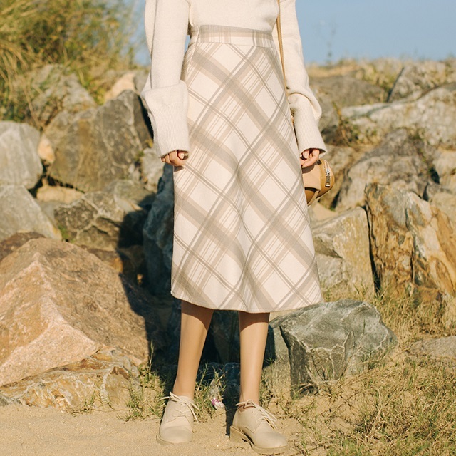 優しい色合いのチェック柄と、Aラインのシルエットで大人の女性にぴったり!