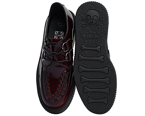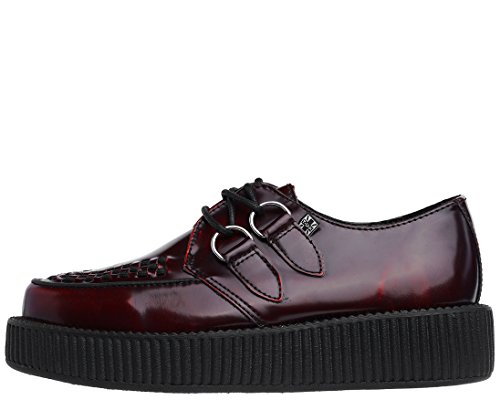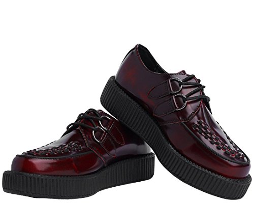 Studio : T.U.K. Publisher : T.U.K. Binding : Apparel Product Description Our classic creeper in a nice burgundy rub off box leather that is super soft. Burgundy leather upper, black woven interlace, silver metal d-rings on our new and improved 1 1 and 2 inch 0