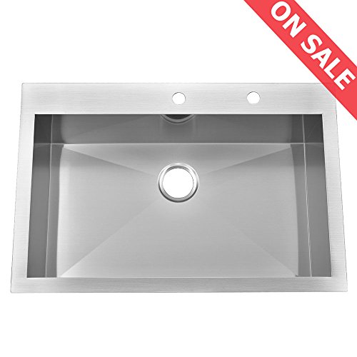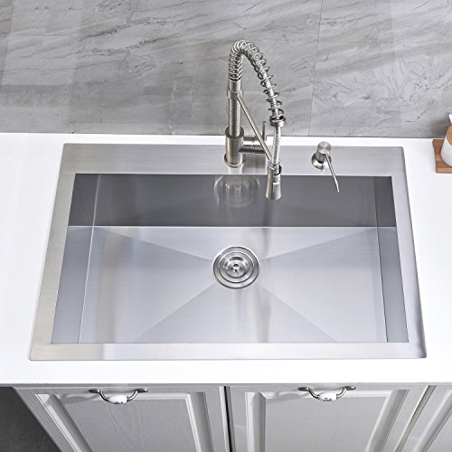 KINGO HOME Commercial 33"x 22" Inch 10 Inch Extra Deep T304 Stainless Steel Handmade Top Mount Drop-In Single Bowl Kitchen Sink
