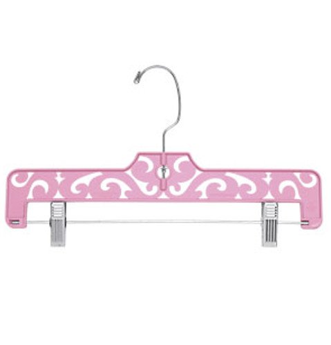 -. Feature : Sold 50 per case / Exclusive design / 14" pink pant hanger / Damask carved pattern
