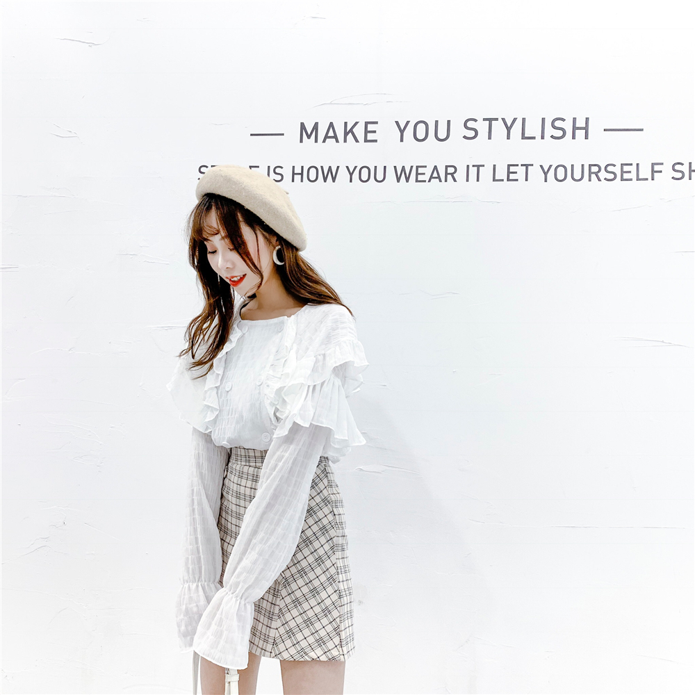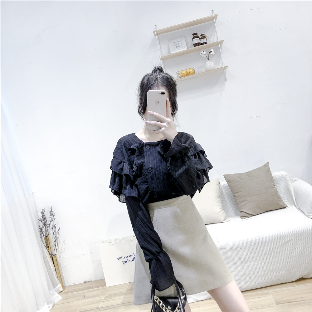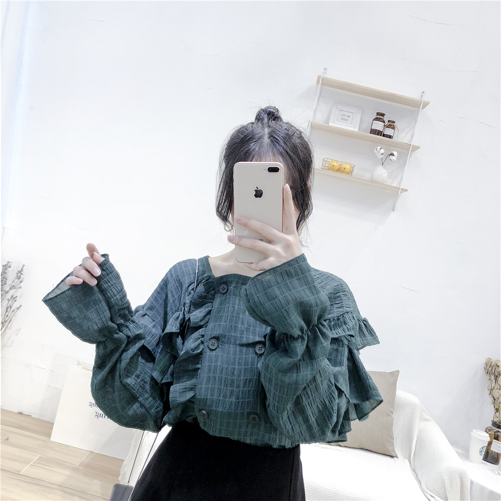 ダブルボタンタイプで一気に旬顔コーデに仕上がる、ロマンティックなブラウスが仲間入り♪