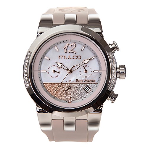 Amazing MULCO watch, great new slim design with Beige silicone band and White dial . Water resistant 100 Meters (330 feet). steel bezel with side stones. New Bluemarine Infinity collection. Since its Creation in 1958 by Mr. Muller (Muller and Co.), Mulco quickly became a prestigious brand that stood head to head with other competitive Swiss watches. With its suggestive designs and impeccable quality, this exclusive brand superseded the expectations of the demanding European, American and South American markets. Mulco maintained its place in the market until it was bought by one of its competitors in 1973, and for three decades the brand remained a sleeping giant only to be reawakened in 2006 by group visionary entrepreneurs. Never forgotten by its followers for its impressive lines and distinguish quality, Mulco stood the test of time, mesmerizing customers once more with the brand's new look. Mulco Watches Inc. gathered a dynamic group of designers and watch manufactories creating a fashionable yet unique collection of bold new models with playful vibrant colors, original textures and solid materials. Most importantly, the new Mulco inherited the classic seal of quality that people have come to expect from the brand. Mulco is now committed to continue this legacy by constantly updating models and improving the brand; altogether creating the best piece of time you can wear. And forever designing time.Feature