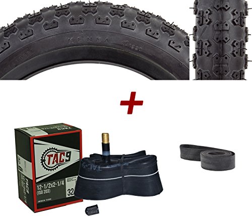 -. Feature : TIRE TYPE: Black, BMX with knobby's / TIRE SPECS: 12-1/2" x 2-1/4" K50 BMX Tire, Black, Medium Tread, ISO 203, Max Pressure 40psi / TUBE SPECS: 12-1/2" x 2-1/4", Schrader (regular) Valve, 32mm Length. See tire rating for Max PSI. / RIM STRIP: 22mm wide, Rubber. Protects the inner tube from the spoke nipples, if it's a spoked wheel. Can be used on spoked or non-spoked wheels. SEE IMAGE / INFLATION: Always inflate slowly and inspect incrementally so the tire doesn't slip off the rim. Inflating too quickly may cause the tire not to bead or hook onto the rim completely which will allow the inner tube to sneak out from between the rim and tire resulting in a popped inner tube.