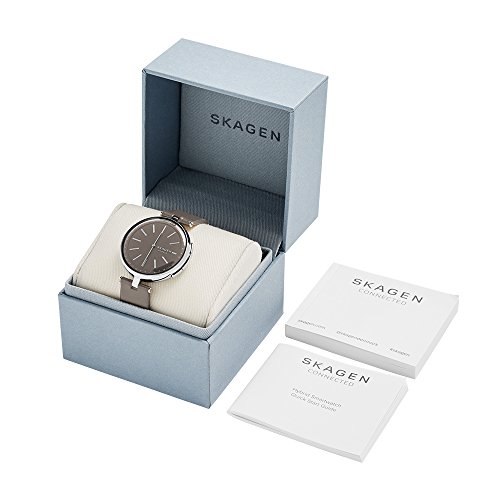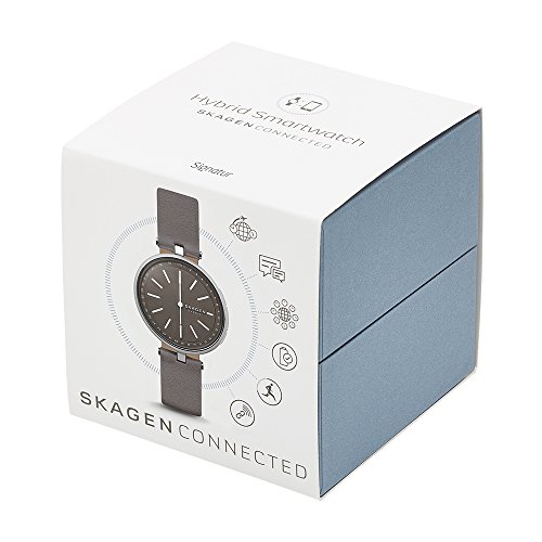 This Signatur T-Bar Hybrid Smartwatch boasts a range of smart features in the body of a classic watch. By connecting to your Android or iPhone and the SKAGEN app, the watch automatically updates to the correct time and date and sends you discreet notifications when you receive a text, email or call. It runs on a standard replaceable CR2025 coin-cell battery.brbrVisit our Learn More and FAQs pages for more information.brbrFeature
