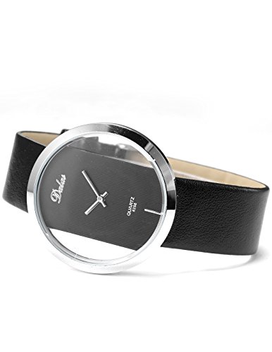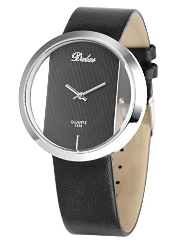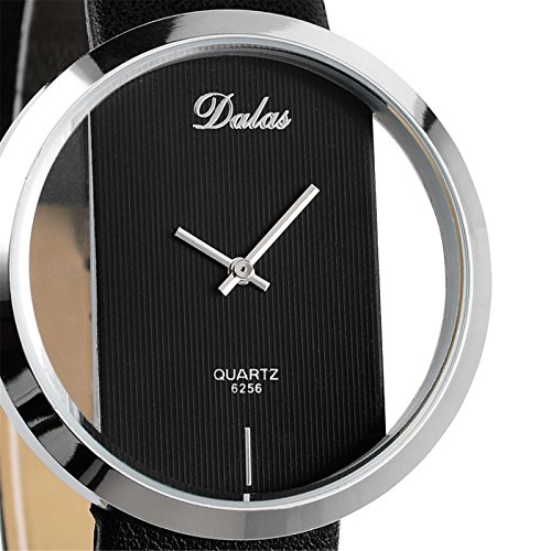 - FEATURES:Durable stainless steel case back. Fashionable transparent dial design,without second hand. Quartz Movement.