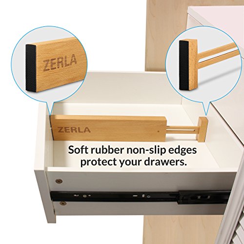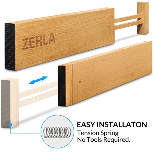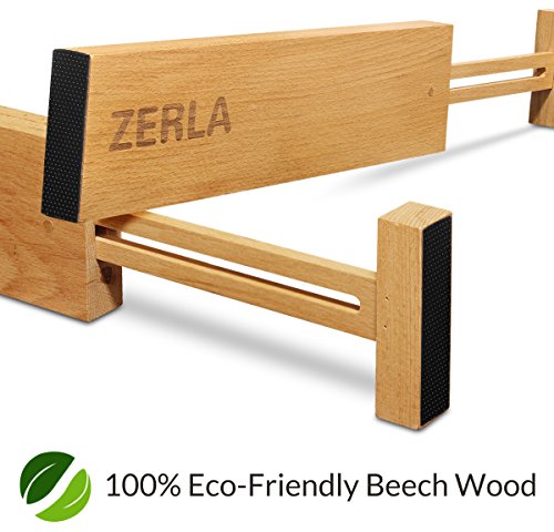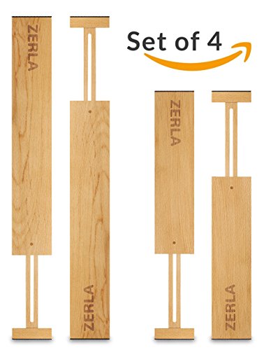 ZERLA Adjustable Drawer Dividers (Set of 4) - Beech Wood Desk Drawer Organizers for Your Kitchen, Bathroom, Bedroom, Office or Dresser - Convenient, Tool-Free Installation - Premium Quality Design