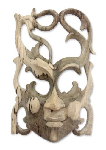 NOVICA Decorative Modern Hibiscus Wood Mask, Beige, 'Woman Of Nature'