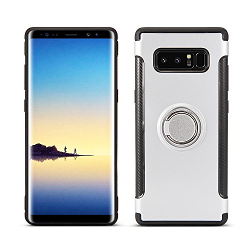 -. Feature : Compatible and Designed for Samsung Galaxy Note 8 / 2 in 1 dual layer case is made from durable plastic and high quality TPU to reduce the risk of damage. / The ring holder is not only a grip, but also a kickstand. It can hold the phone with your finger to avoid slipping, and the 360 degree rotating kickstand is convenient for transform into a mini media center. / Back of the case built-in metal plate can be fixed on the magnetic car mount holder(not included) / The interior of case has a groove texture to cool your phone by enhance the air velocity and volatilize.
