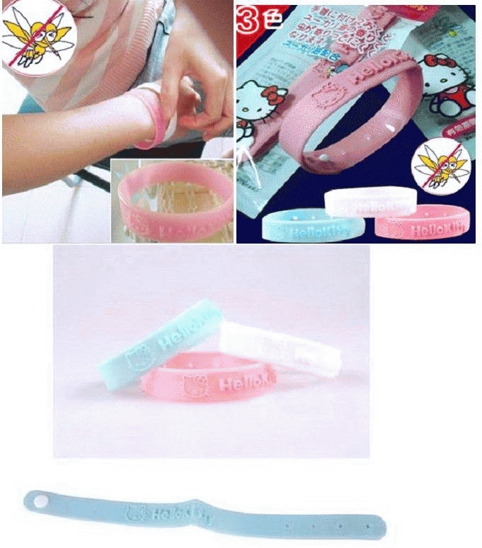 Gelang anti-nyamuk dari bahan silikon yang lebih kuat (dibanding gelang anti-nyamuk biasa) dengan campuran citronella essential oil yang aman untuk anak kecil dan cocok untuk dewasa dengan dilengkapi 4 lubang untuk mengatur besar kecilnya pergelangan tangan anda. Gelang ini bisa dipakai di pergelangan tangan atau kaki. Gelang ini bisa bertahan selama 120 jam jika disimpan rapat di tempatnya. Desain Hello Kitty dengan tulisan timbul yang indah sekaligus menjadikan gelang ini sebagai aksesoris.