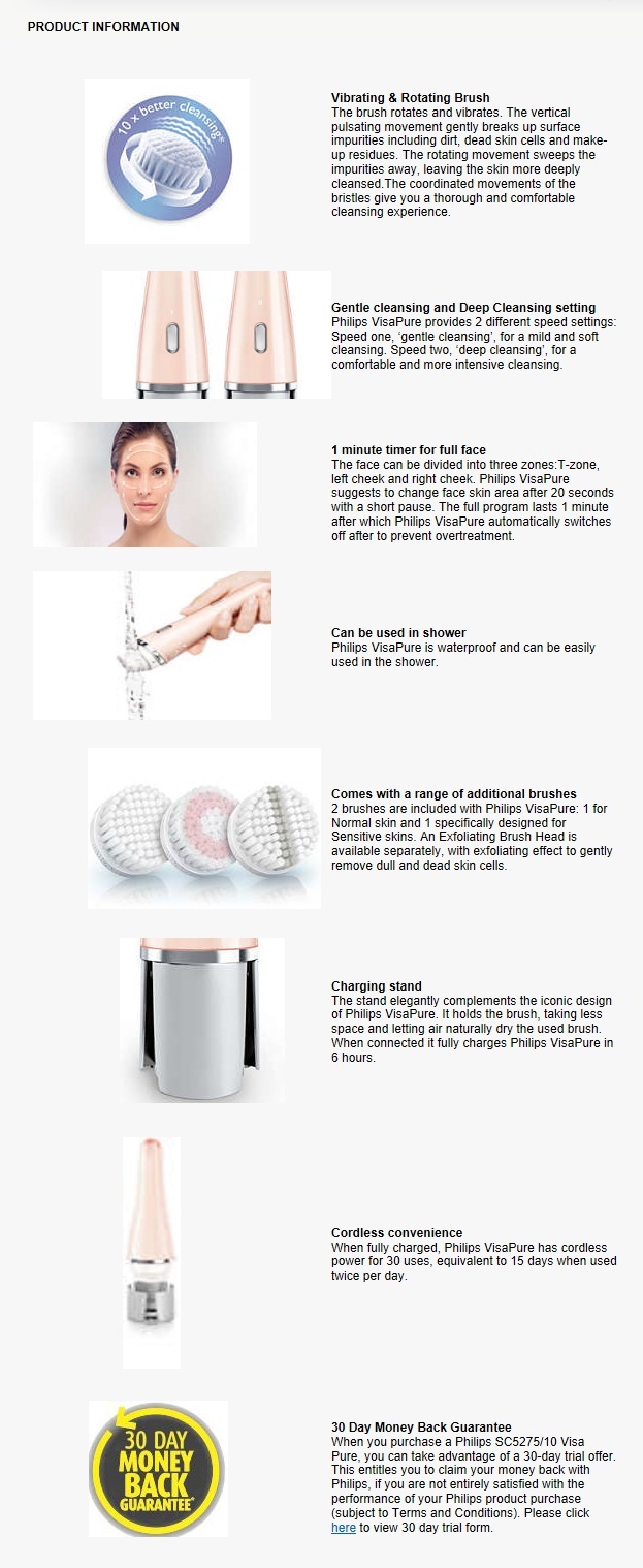 Easy to use, easily fits in your skincare routine - Philips VisaPure Essential can be used in the shower,the stand charges Philips VisaPure Essential when connected, Increases the absorption of your favorite skincare products and The heads are easy to clean with warm water and soap.
