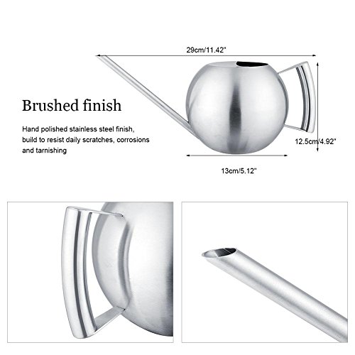 【DURABLE QUALITY WITH HAND POLISHED STEEL FINISH】The watering can is designed brushed finish, hand polished stainless steel finish is build to resist daily scratches, corrosion and tarnishing.
