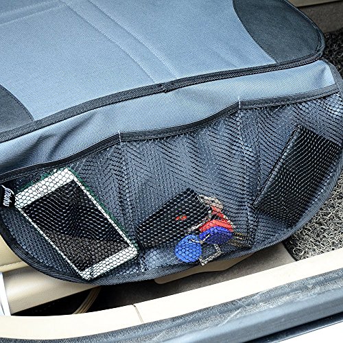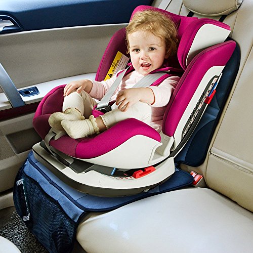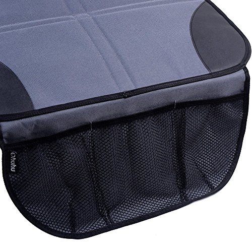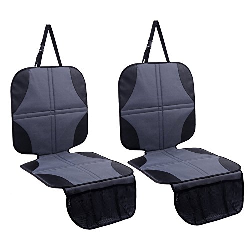 The Ohuhu 2-Pack Car Seat Protector protects your car seats and car upholstery with added convenience. The durable, easy to clean mat works with both forward-facing and rear-facing seats. It has been constructed with high-quality fabrics, which have built in dual grip traction technology to prevent skidding and secure seat into place. The waterproof mat protects your seat and car from spills and messes. While the added mesh allows for easy and convenient storage of snacks, toys, drinks, bottles, wipes and more. This mat is built to work in any type of car with any type of baby seat, and has been crash tested for optimal performance.
