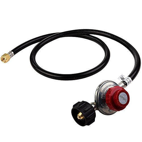 GASPRO 4FT Gas Grill Regulator and Hose, 0-20 PSI Adjustable Propane Regulator with Hose, High Pressure LPG Regulator for QCC-1/Type-1 Tank and Gas Grill 3/8 inch Female Flare Nut