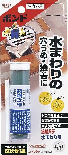 水周りの穴埋め・接着に、切って練るだけの簡単接着パテです。 |