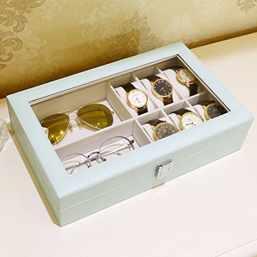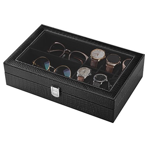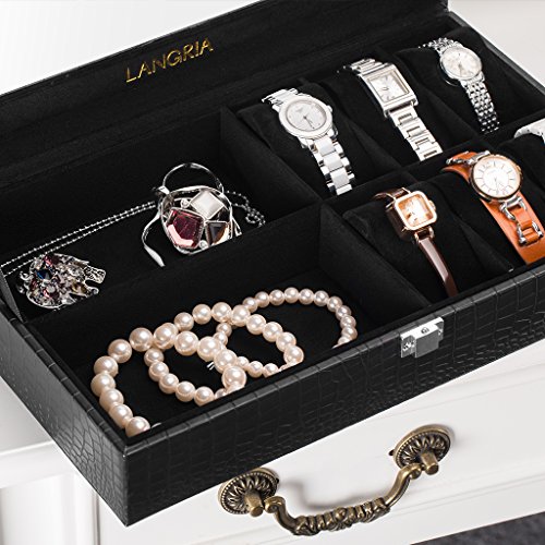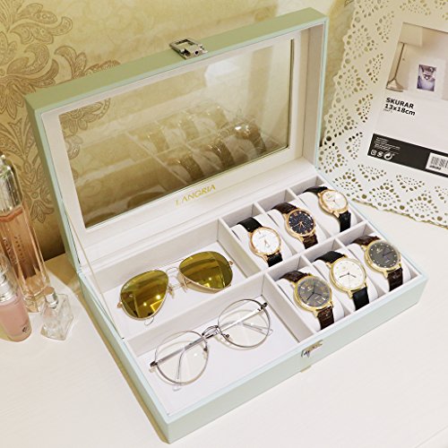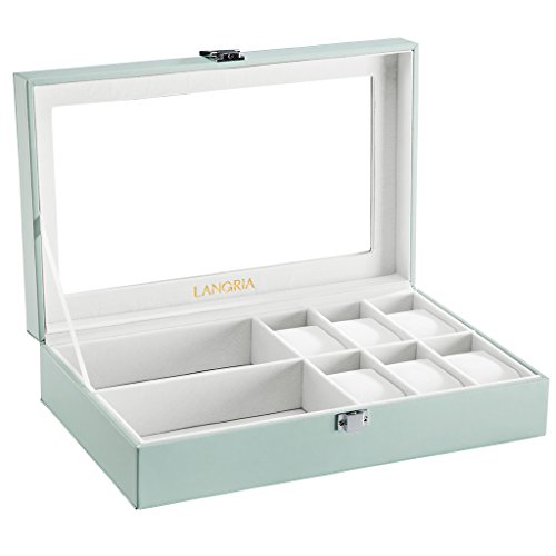 -. Title : LANGRIA 6 Watch Case Box with Glass Top Watch with Display Organizer