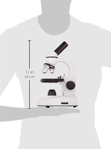 Includes plain stage with stage clips, a set of 50 prepared slides, and The World of the Microscope book