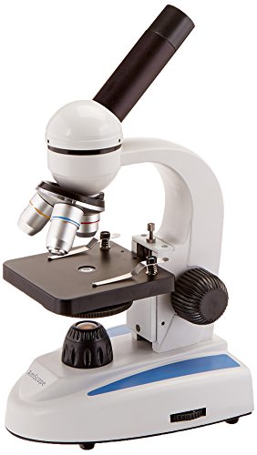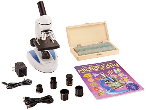 AmScope M149C-PS50-WM-E Digital Compound Monocular Microscope, WF10x and WF25x Eyepieces, 40x-1000x Magnification, LED Illumination, Brightfield, Single-Lens Condenser, Plain Stage, 110V or Battery-Powered, Heavy-Duty Metal Frame, Includes Set of 50 Prepa