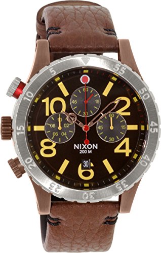 -. Binding : Watch -. Brand : NIXON -. Color : Brown -. Department : Unisex-adult -. EAN : 3608700069326 -. Feature : Nixon designs watches for the teens in all of us - pushing the boundaries of youthful attitudes / Water proof watch perfect for water enthusiasts of any kind / Ever popular chronograph, or precision stopwatch, adds high functionality / Soft and supple leather band perfect for anyone with sensitive wrists / Trendy triple dials add amazing visual interest -. Label : Nixon -. Manufacturer : Nixon -. Model : A363-1625-00 -. MPN : A3631625-00 -. NumberOfItems : 1 -. PackageQuantity : 1 -. PartNumber : A3631625-00 -. ProductGroup : Watch -. ProductTypeName : WATCH -. Publisher : Nixon -. Studio : Nixon -. Title : Nixon A363-1625 Mens The 48-20 Chrono Leather Antique Copper Brown Watch