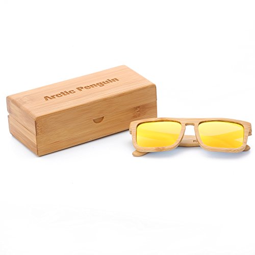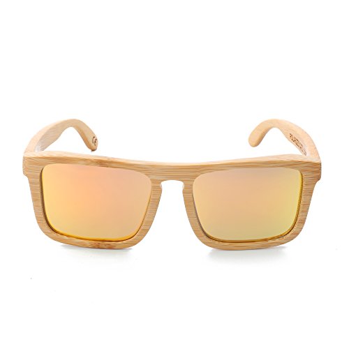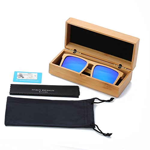 OUR GLASSES: 1.Each pair of our sunglasses is handmade from 100% natural bamboo.The lightweight bamboo wood offers a comfortable fit that is durable and sturdy at the same time. 2.The lenses are specially designed so that they are both dark and polarized, offering 100% UVA/UVB protection even in intense lighting conditions. 3.Perfect gift for yourself or for that special someone,these glasses are stylish, durable, natural and each pair includes a great looking bamboo gift box.