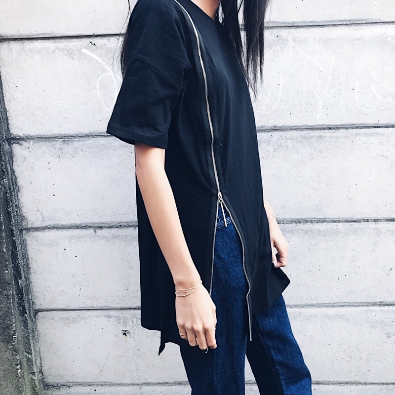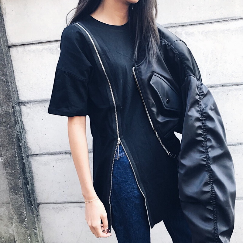 大胆なスリットで目を引くアイテム。スリット部分はチャックで調整できるから、ボトムスやインナーに合わせていろんなパターンで楽しめます?