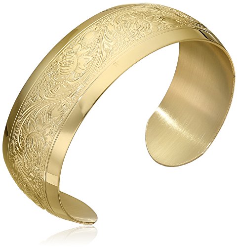 -. Feature : 14k gold-filled cuff bracelet featuring intricate embossed floral design / No closure / Made in the USA