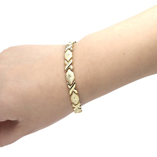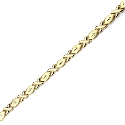 -. Binding : Jewelry -. Brand : SL Gold Imports -. Department : womens -. Feature : Great gift! Express your deepest feelings of love with this eye-catching "Hugs & Kisses" bracelet. Packaged in a beautiful bracelet box / We know people have different tastes, which is why we create our jewelry pieces to match your fit and suit your taste! Choose between Yellow Gold, White Gold, or Two Tone Gold and select the size that best suites the size of your wrist, or of the lucky recipient. / Good quality! Durably crafted with 10k Fine gold and closes with a lobster claw clasp for added security -. Model : stmpto-xo -. PackageQuantity : 1 -. ProductGroup : Jewelry -. ProductTypeName : FINENECKLACEBRACELETANKLET -. Title : 10k Fine Gold Stampato Xoxo X & O Friendship and Relationship Chain Bracelet