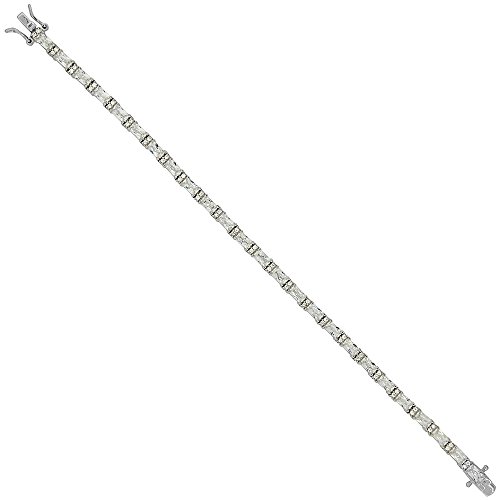 -. Title : Sterling Silver Alternating Small Round & Baguette Cubic Zirconia Tennis Bracelet, 1/8 inch wide