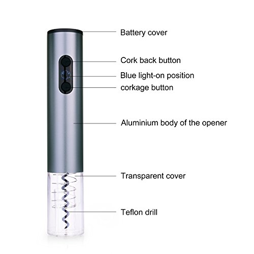 Studio : VLove Publisher : VLove Product Description The only Wine Bottle Opener you will ever need. Electronic Effortless. Everybody loves wine, but one of the worst things about wine is getting through the cork and seal properly. How many times your party has been spoiled by the cork falling into the wine, or not able to be removed, because of a bad bottle opener?! We have created this Electronic Wine Bottle opener to take all the guesswork and difficulty out of drinking wine. The VLove's new Electronic Bottle Opener houses the corkscrew in an acrylic shell, so there is zero guesswork and no chance of getting hurt. Make opening any bottle of wine fun, fast and extra safe! Our product runs on batteries, so you never have to worry about unwieldy cords and cables getting in the way. It's also housed in a beautiful metal and acrylic container that keeps your hands safe as you pop open your bottles of wine. All material used are solid and high-quality to ensure a long lasting life of this product and your safety. Ergonomic design for an easy handling, light weight (12.5 ounces) and optimal dimensions (10.6 x 2.8 x 2.8 inches). How to use the Electric Wine Bottle Opener: 1. Put the foil cutter on the bottle's neck. Tighten and spin it to turn cut foil. 2. Put the wine opener over the bottle's neck, let the corkscrew drill into the center of the cork. 3. Continue pressing the lower button until it stops. 4. Press and hold the upper button until the cork is pulled out automatically. What's in the Package: 1 x Electronic Wine Opener 1 x Wine Foil Cutter 1 x Power Cable(Charge Adapter not included)