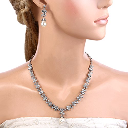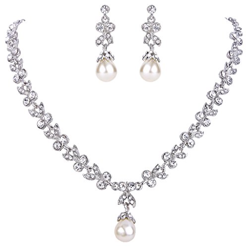 -. Binding : Jewelry -. Brand : EVER FAITH -. Department : womens -. Feature : [!]EVER FAITH® is a US registered trademark and Ever Faith Jewelry is its only owner. / Main Color:clear / Length: 43cm(16.93")-50cm(19.67"), Attachment Size: 3.1cm(1.2") by 26cm(10.2"), Earring Size: 3.5cm(1.38") by 0.9cm(0.35") / Wrapping: Come with some spare crystals, a gift box and a favor bag. If you need assistance please contact us. -. Label : Ever Faith -. Manufacturer : Ever Faith -. Model : N02742-1 -. MPN : N02742-1 -. PartNumber : N02742-1 -. ProductGroup : Jewelry -. ProductTypeName : FASHIONOTHER -. Publisher : Ever Faith -. Studio : Ever Faith -. Title : EVER FAITH Wedding Silver-Tone Leaf Simulated Pearl Jewelry Set Clear Austrian Crystal
