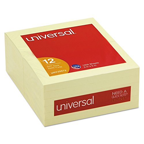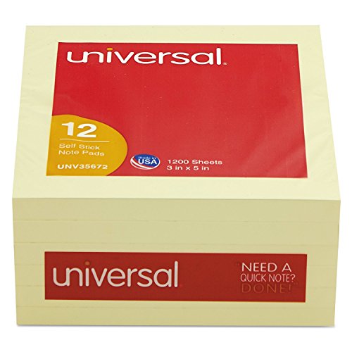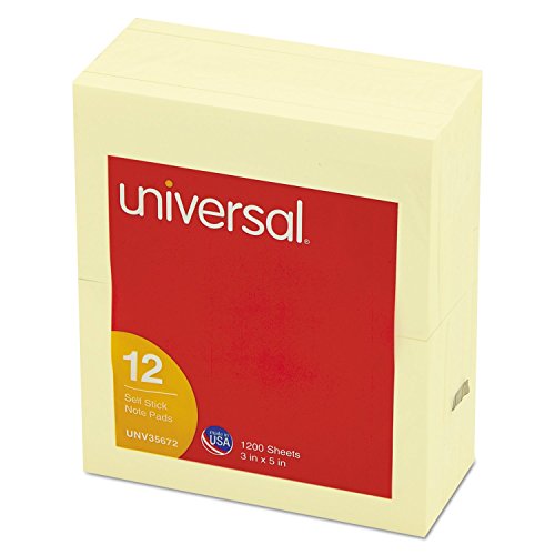 Universal 35672 Standard Self-Stick Notes, 3 x 5, Yellow, 12 100-Sheet Pads/Pack