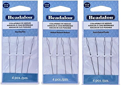 3 Packs - Beadalon Collapsible Eye Needles 2.5" Fine, Medium & Heavy - 4pcs/pk - Total 12 Needles (in Rigid Pak TM mailer)