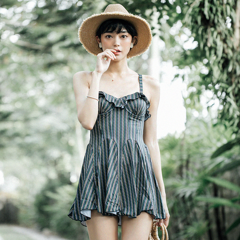 【関連キーワード】レディース ワンピース水着 フリル ストライプ 体型カバー フレア ショートパンツ 大きいサイズ 送料無料