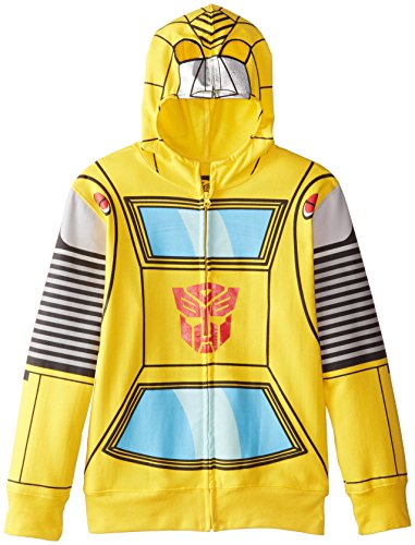 Habro transformers bumblebee boys costume hoodie with face mask hood. Highly detailed printed hoodie providing enhanced realistic look. Great for all year use and ever so popular Halloween