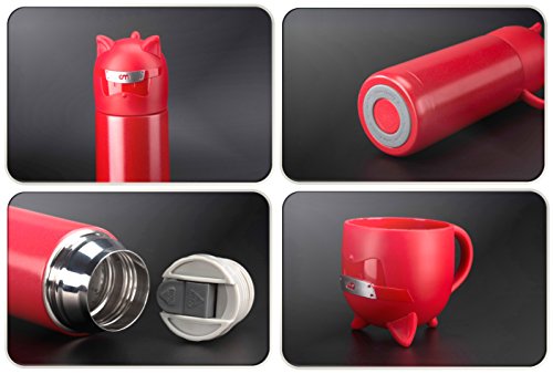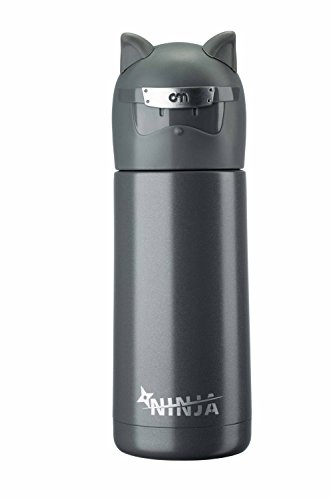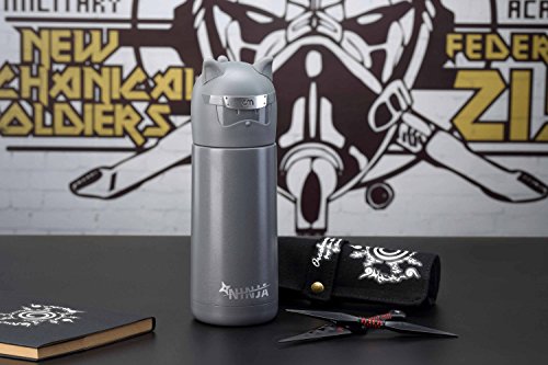 Landrind Portable Thermos Travel Mug Cute Design Vacuum Insulated Stainless Steel Thermos Water Bottle, Mini Size Coffee Thermos & Vacuum Flask (300 mL, NINJA & Grey)