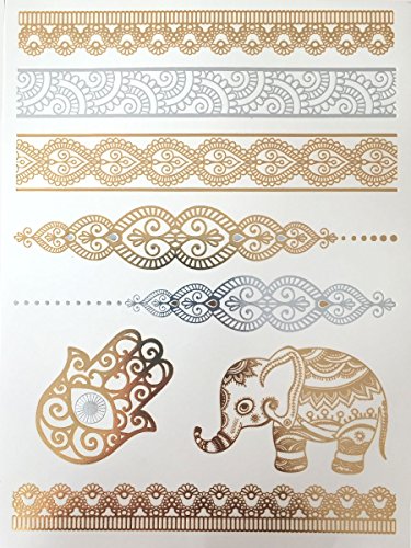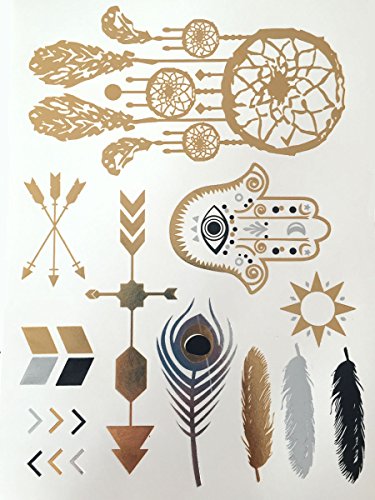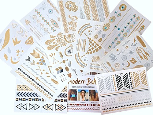 10 Sheets Modern Boho Metallic Tattoos Flash Gold/Silver Ultimate Collection