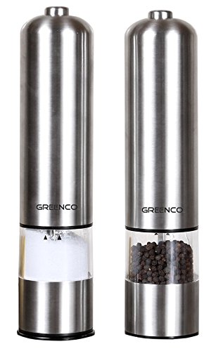 Greenco GRC0211 2-Pack Automatic Electric Pepper Mill and Salt Grinder, Stainless Steel