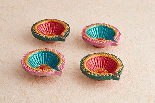 Set of 4 Diwali Decorations Colorful Oil Lamp Diya For Pooja/Puja Home Decor