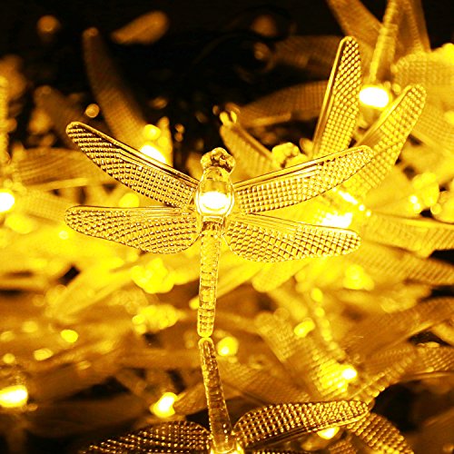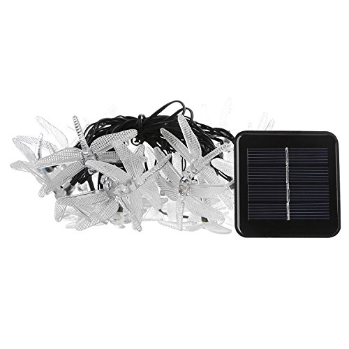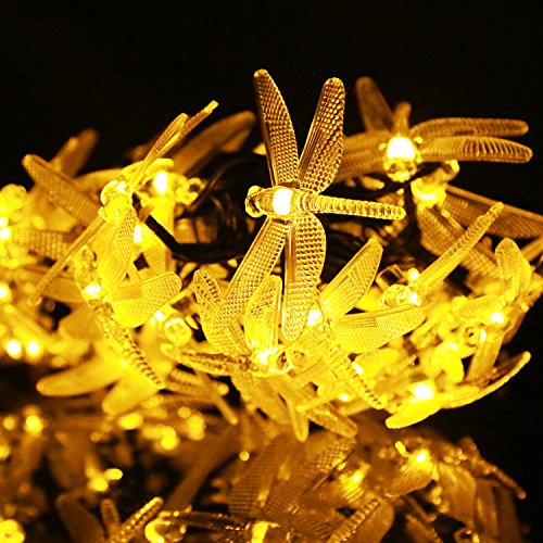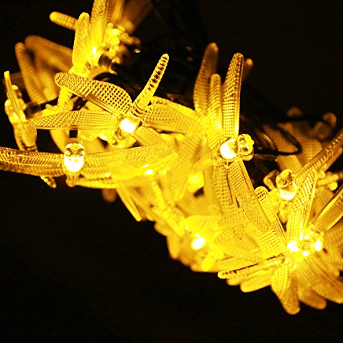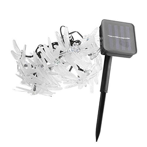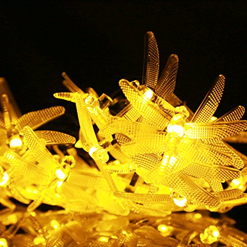 Kumedia Dragonfly Shape 19.7 ft 30 LEDs Solar Powered String Lights, Waterproof, 2 Modes (Steady, Flash) for Outdoor, Garden, Stage, Christmas Decorations (Warm White)