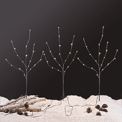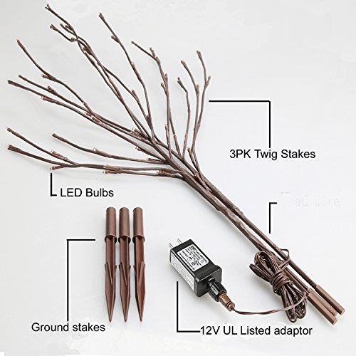EAMBRITE 3PK 30" Brown Wrapped Lighted Twig Stake with 60LT Warm White LED bulbs for outdoor and indoor use