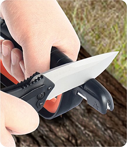 SHARPAL 103N All-In-1 Knife, Pruner & Tool Sharpener is the most versatile sharpener in the market! The sharpener features 3 sharpening slots of preset optimal sharpening angle, one carbide bar, and one ceramic bar to restore and hone all sorts of knives, garden implements, scissors, tools ege, etc. Use it for touching up your pocket knives, scissors or poultry shears. Out in the garden you can restore a good edge to axes, pruners, hedge shears, loppers, hoes, spades, scythes, machetes etc. Sharpen chisels, scrapers and other professional tools in your workshop. It comes with large handle to allow for use with gloves and oversized safety hand guard. Rubber over-molded handle and base provide secure and comfortable grip. Demo video link: https://www.youtube.com/watch?v=_1j2KEifZocFeature